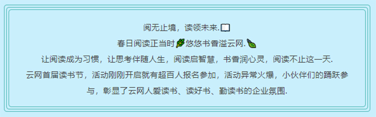 讓我們把“云網(wǎng)首屆讀書節(jié)”作為一次新的耕耘和播種,